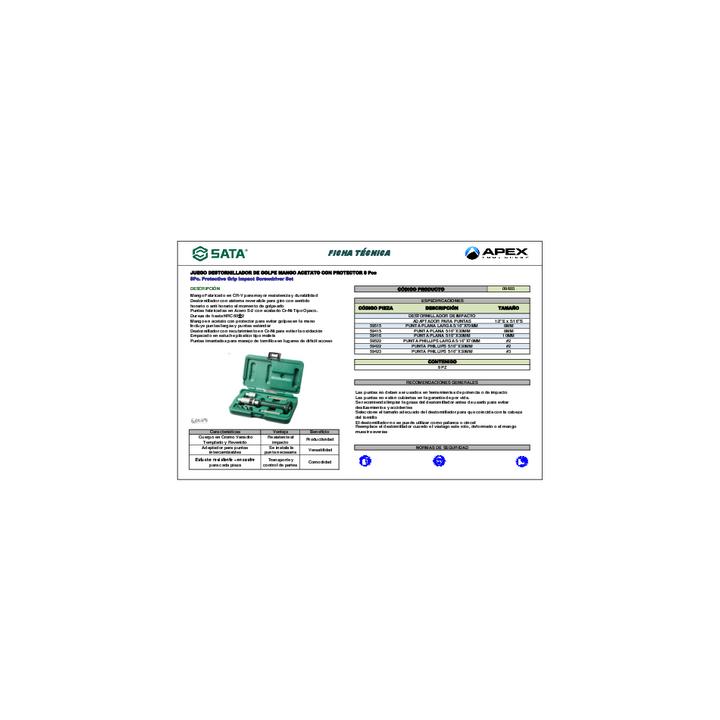 Mango Fabricado en CR-V para mayor resistencia y durabilidad. Destornillador con sistema reversible para giro con sentido horario o anti horario al momento de golpearlo. Puntas fabricadas en Acero S-2 con acabado Cr-Ni Tipo Opaco. Dureza de hasta HRC60士2. Mango en acero estriado para mayor agarre y ergonomía. Incluye puntas largas y puntas estándar. Destornillador con recubrimiento en Cr-Ni para evitar la oxidación. Empacado en estuche plástico tipo maleta. Puntas imantadas para manejo de tornillos en lugares de difícil acceso.