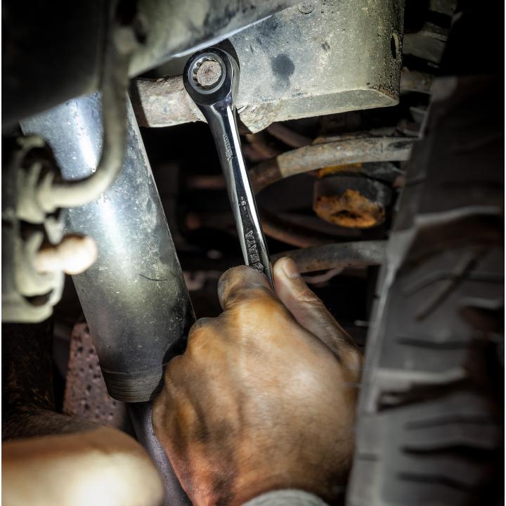 Las llaves tipo Rachet SATA cuentan con engranajes de 72 dientes lo que permite que la llave con escasos giros de 5 grados pueda hacer girar la pieza roscada.Las llaves combinadas ofrecen una mayor agilidad y fuerza debido a la unionde la llave boca fija y boca estrellada en una sola pieza.Aleación en cromo vanadio que permite una alta resistencia.Recubrimiento en cromo niquelado que evita la oxidaciónSuperficie de contacto de 11 dientes por lo que la vida útil de ratchet es mayor.